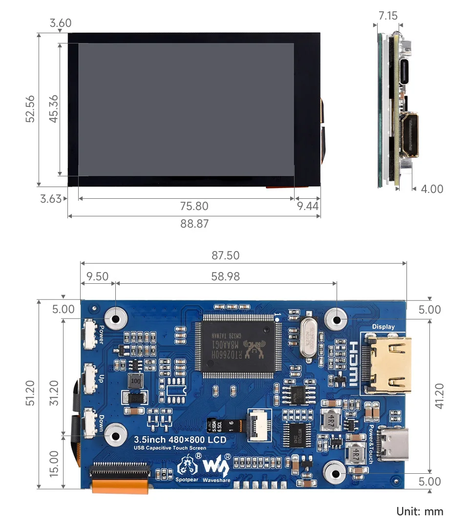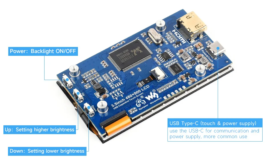 Comprar Raspberry Pi-pantalla táctil LCD de 3,5 pulgadas, pantalla táctil capacitiva de 480x800, HDMI de 3,5 pulgadas para PI4 / 3B + / Jetson Nano