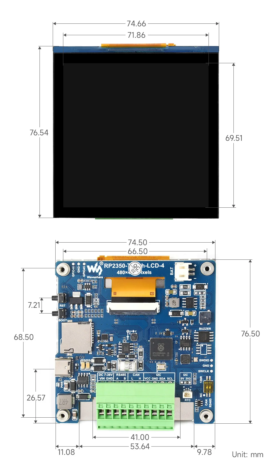 El RP2350-LCD-4 es una placa de desarrollo de microcontroladores altamente integrada y de alto rendimiento diseñada por Waveshare.Tamaño pequeño con pantalla IPS integrada de 4 pulgadas, chip RTC, IMU de 6 ejes (acelerómetro de 3 ejes y giroscopio de 3 ejes), ranura para tarjeta TF, etc., lo que le facilita el desarrollo e integración en los productos rápidamente.
