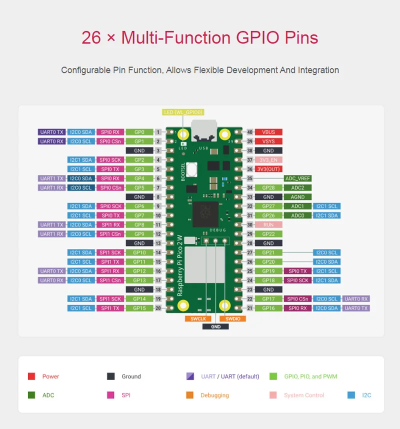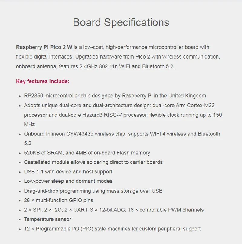 Para Raspberry Pi Pico 2 RP2350 Pico2 Pi Pico 2W opcional ARM Cortex-M33 y procesador Hazard3 RISC-V 150MHz