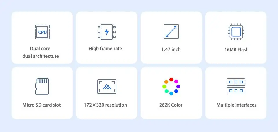 Pantalla LCD integrada de 1,47 pulgadas, resolución de 172 × 320, 262 K colores