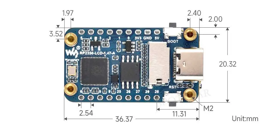 RP2350 1.47 pantalla LCD Llegó relativamente rápido, considerando que pasó por el día más ocupado en la historia de AusPost. Hermoso dispositivo, ojalá pudiera subir un video del TFT_eSPI con la lluvia digital funcionando en él. El software de Waveshare para este dispositivo deja un poco que desear, pero logró iluminar el neopixel y la pantalla en cuestión de minutos. Y ejecutando con éxito muchas librerías que se adaptan a un chip ST7789: Adafruit, TFT_eSPI, etc. etcétera Cliente muy, muy satisfecho :)