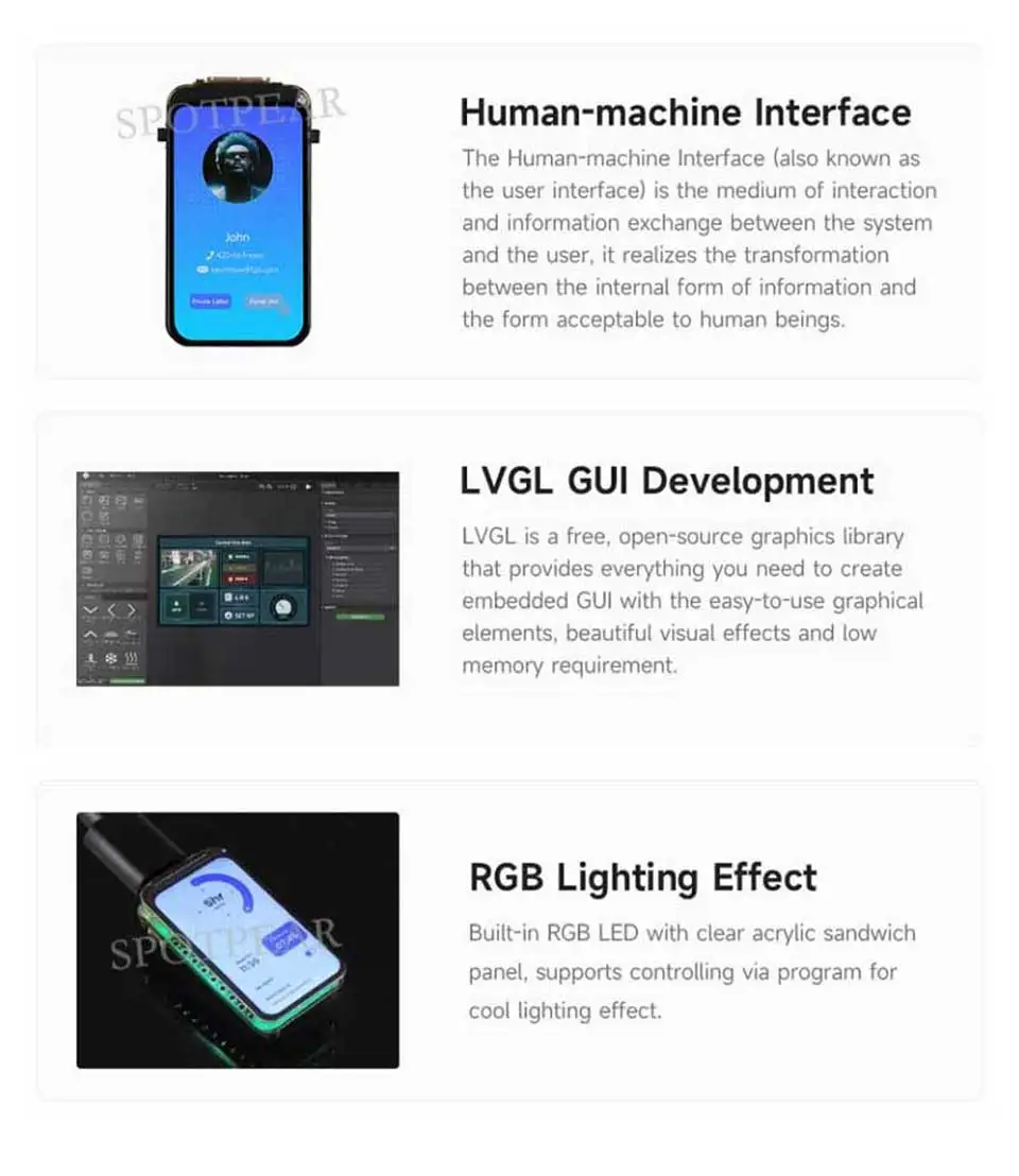 Pantalla LCD integrada de 1,47 pulgadas, resolución de 172 × 320, 262 K colores