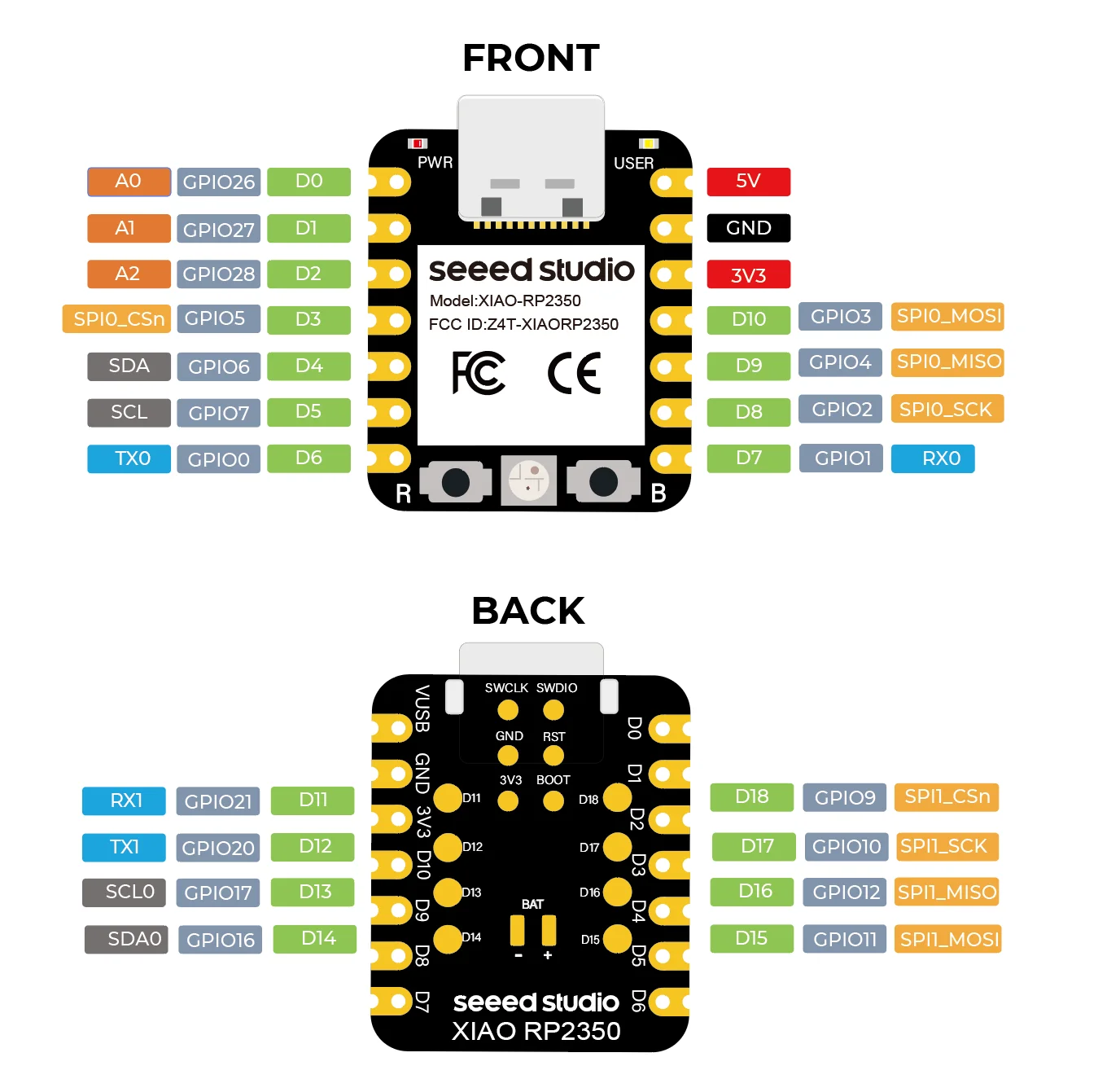 El XIAO RP2350 empaqueta la potencia del Raspberry Pi RP2350 (doble núcleo Cortex-M33 que funciona a 150 MHz con FPU, seguridad y cifrado mejorados) en el factor de forma clásico de XIAO.Con solo 21 x 17,5 mm, cuenta con 19 GPIO multifunción, un LED RGB y un sistema de administración de batería con consumo de energía ultrabajo de 27 μA, fuente de alimentación de batería y medición directa del voltaje de la batería.Gracias al ecosistema XIAO, el XIAO RP2350 es compatible con una amplia gama de complementos, incluidas pantallas, matriz LED, módulos Grove, bus CAN, sensores Vision AI y sensores mmWave.Con soporte nativo para MicroPython, C y C++, el XIAO RP2350 es perfecto para desarrolladores de todos los niveles que buscan crear aplicaciones compactas que funcionan con baterías para control inteligente, dispositivos portátiles, teclados de bricolaje y más.