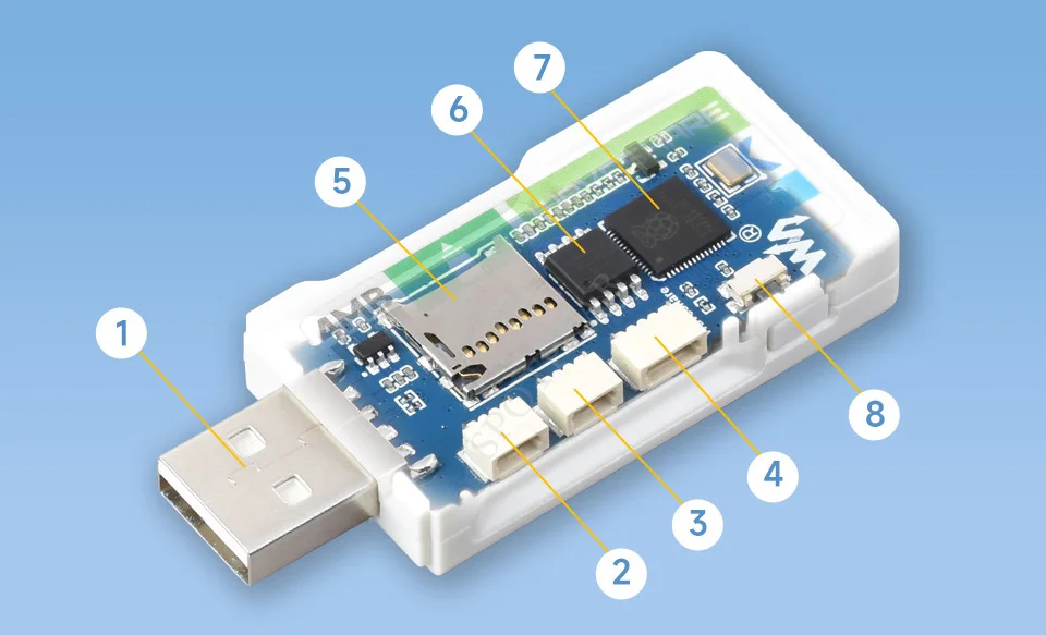5.Ranura para tarjeta TF: admite interfaz SDIO y comunicación de interfaz SPI
