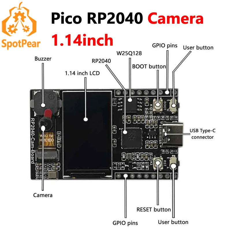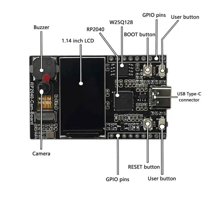 [] PICO-CAM-B es una placa de desarrollo de cámara Raspberry Pi Pico RP2040 con LCD ST7789 de 1,14 pulgadas y zumbador.