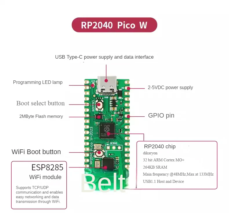 Comprar Raspberry Pi Pico W Board TYPE-C RP2040 Microordenadores ARM de doble núcleo de baja potencia Procesador Cortex-M0+ de alto rendimiento