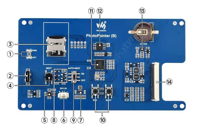 Comprar Raspberry pi RP2350 Pantalla de papel electrónico a todo color E6 de 7,3 pulgadas Marco de fotos electrónico FotoPainter (B) programable 800 × 480