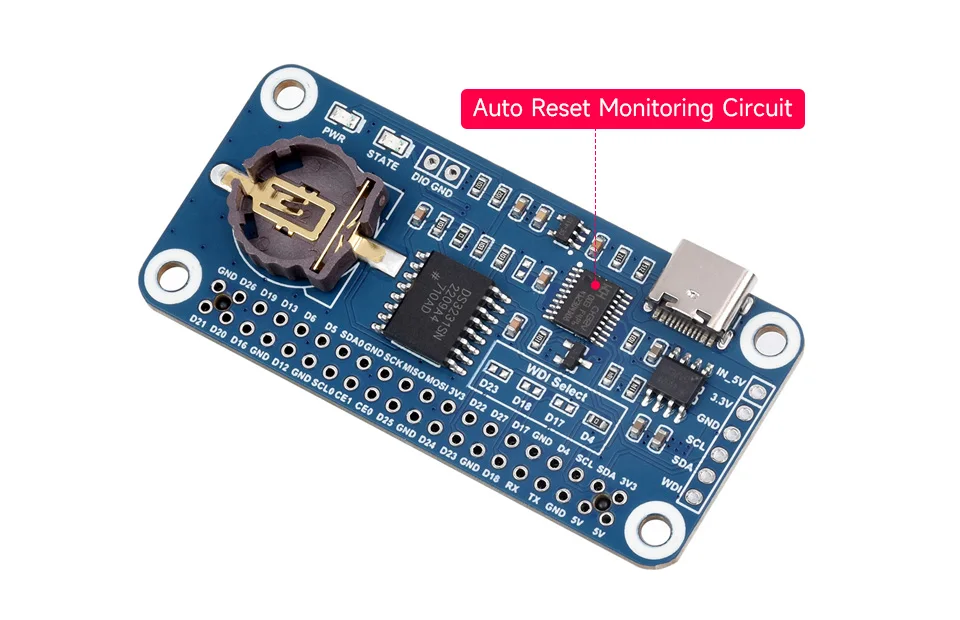 [] This is an RTC WatchDog HAT (B) designed for Raspberry Pi with high-precision RTC and watchdog HAT, which refreshes and counts at a limited time and the watchdog circuit can reset the system.