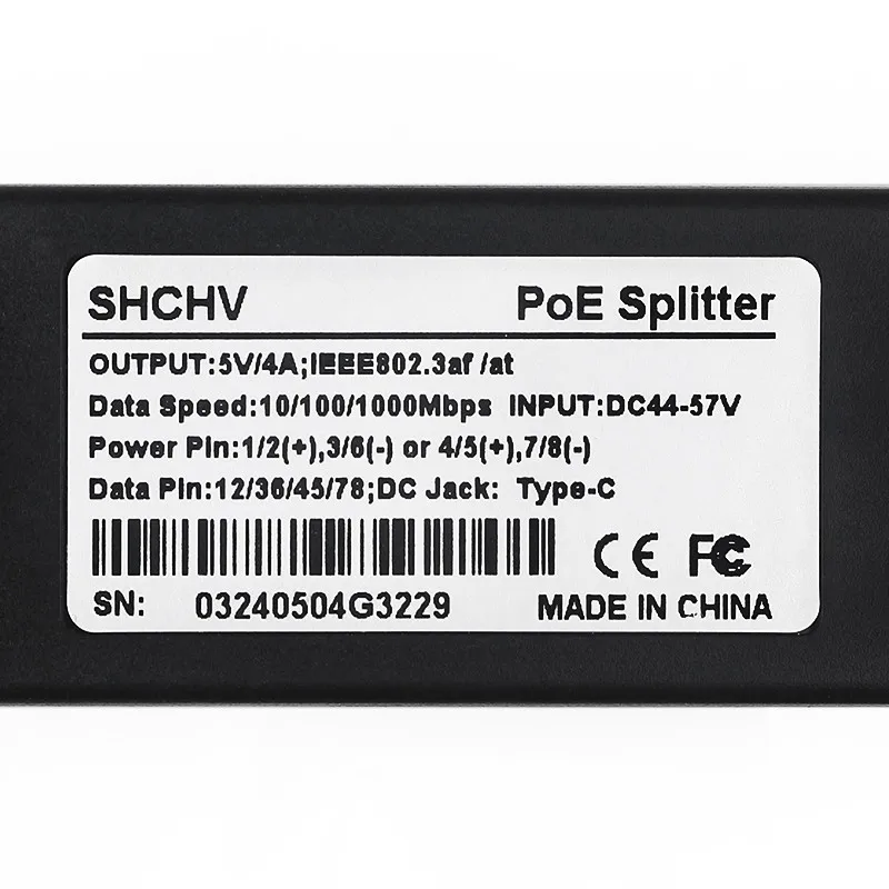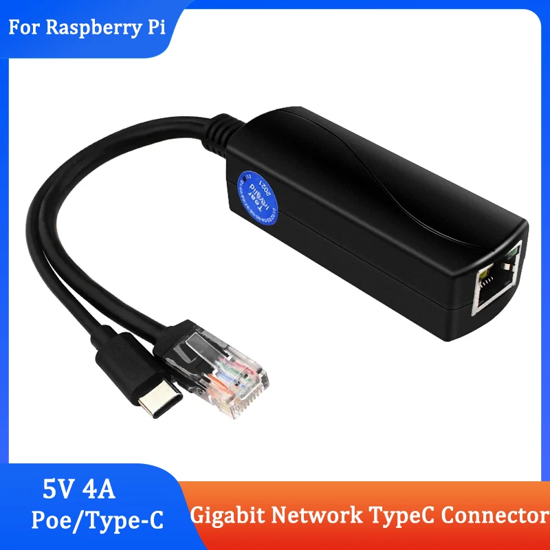 Raspberry Pi USB Tipo C PoE Separador 1000Mbps Gigabit PoE Splitter 5V 4A Tipo C Conector para Raspberry Pi 5