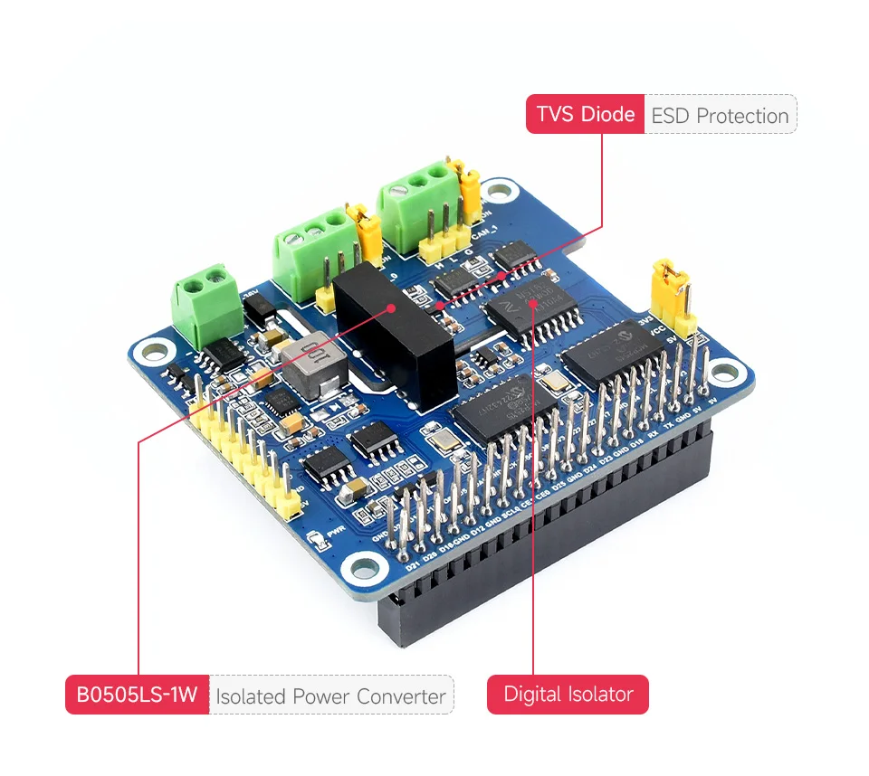 [] Sombrero de expansión de bus CAN aislado de 2 canales para Raspberry Pi, solución de chips duales, diseño apilable para expandir múltiples canales CAN, protecciones múltiples integradas, sombrero Raspberry Pi