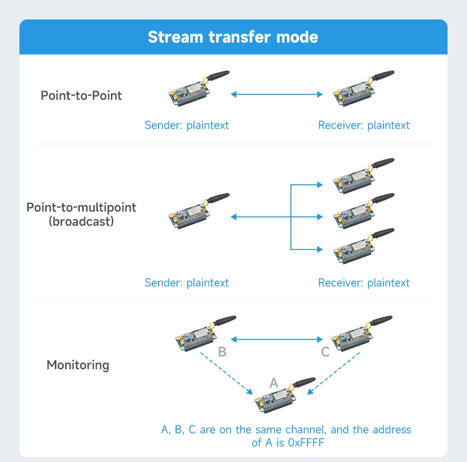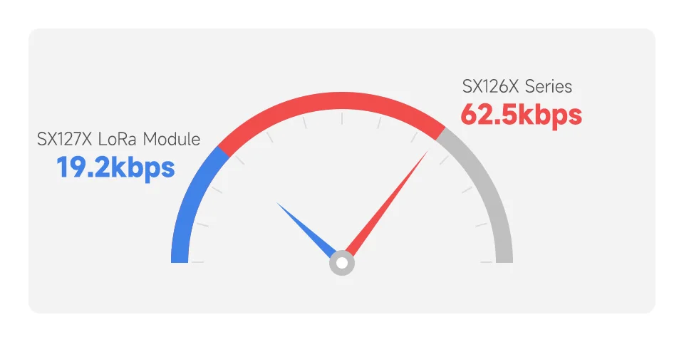 The radio rate is up to 62.5kbps, 3X the speed of the SX127X series LoRa module