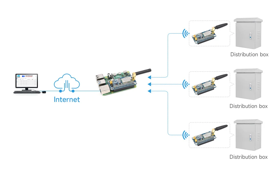 Comparing with normal SX127X LoRa modules, the SX126X LoRa HAT achieves longer communication distance, higher rate, lower consumption, better safety and anti-interference, suitable for various applications such as industrial control, smart home, data collection, etc.