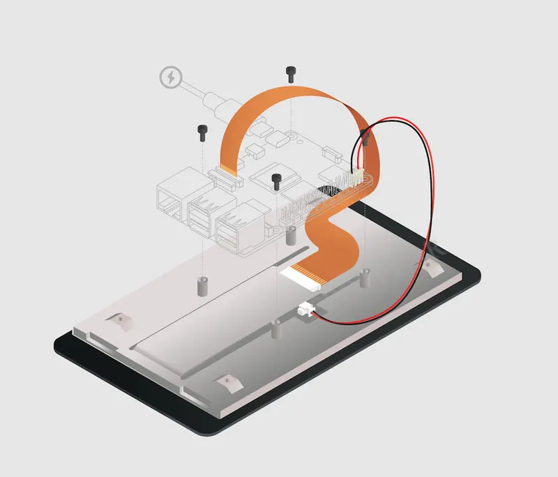 To connect a Touch Display 2 to a Raspberry Pi, use a Flat Flexible Cable (FFC) and a GPIO connector. The FFC you’ll use depends upon your Raspberry Pi model:
