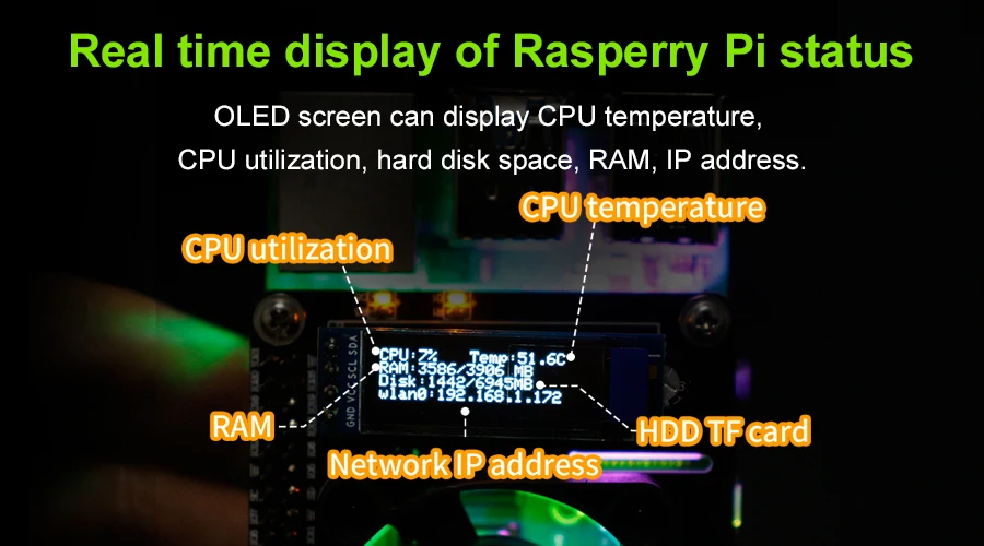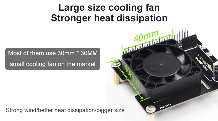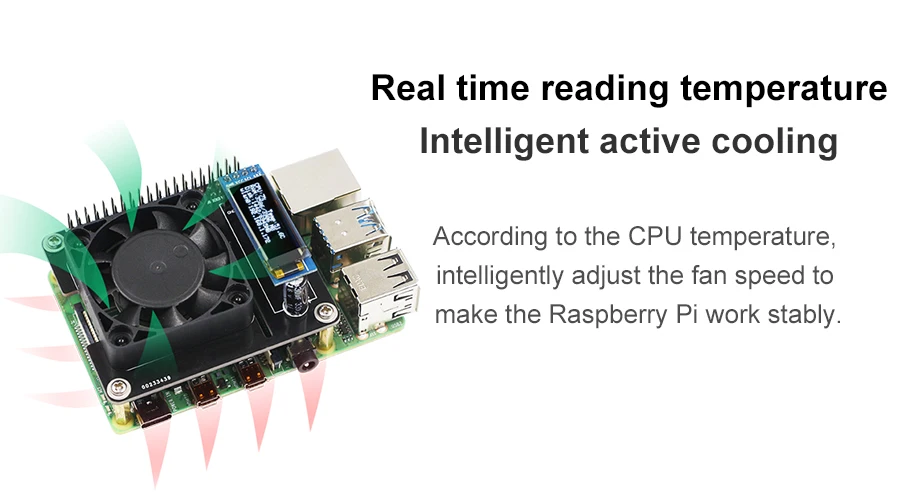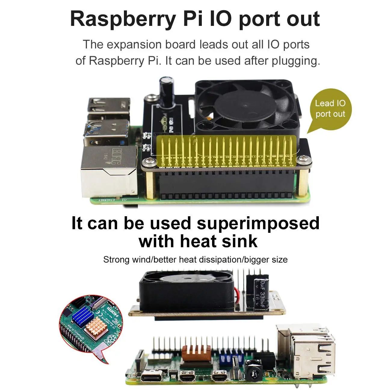 1. Perfectamente compatible con Raspberry Pi 4B/3B +/3B , no ocupa ningún pin de Raspberry Pi, no ocupa espacio en el disipador de calor.