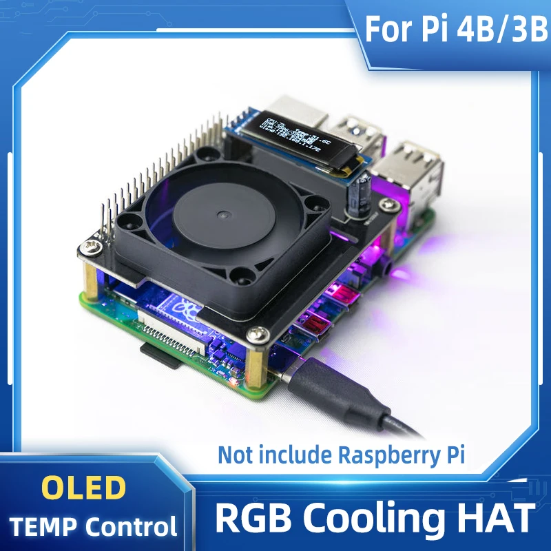 Comprar Raspberry Pi-ventilador programable con Control inteligente de temperatura, pantalla OLCD, placa de costo para Raspberry Pi 4 Modelo B 3B + 3B