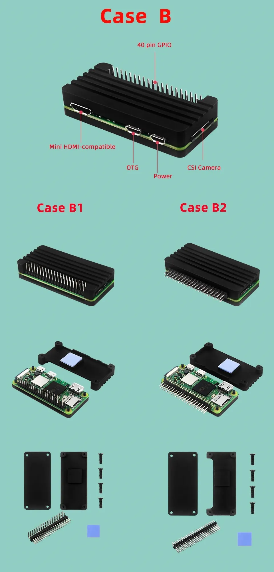 La carcasa de aluminio para Raspberry Pi Zero 2 W/Zero W/Zero 1.3, con refrigeración pasiva. Hay 5 casos diferentes para elegir.
