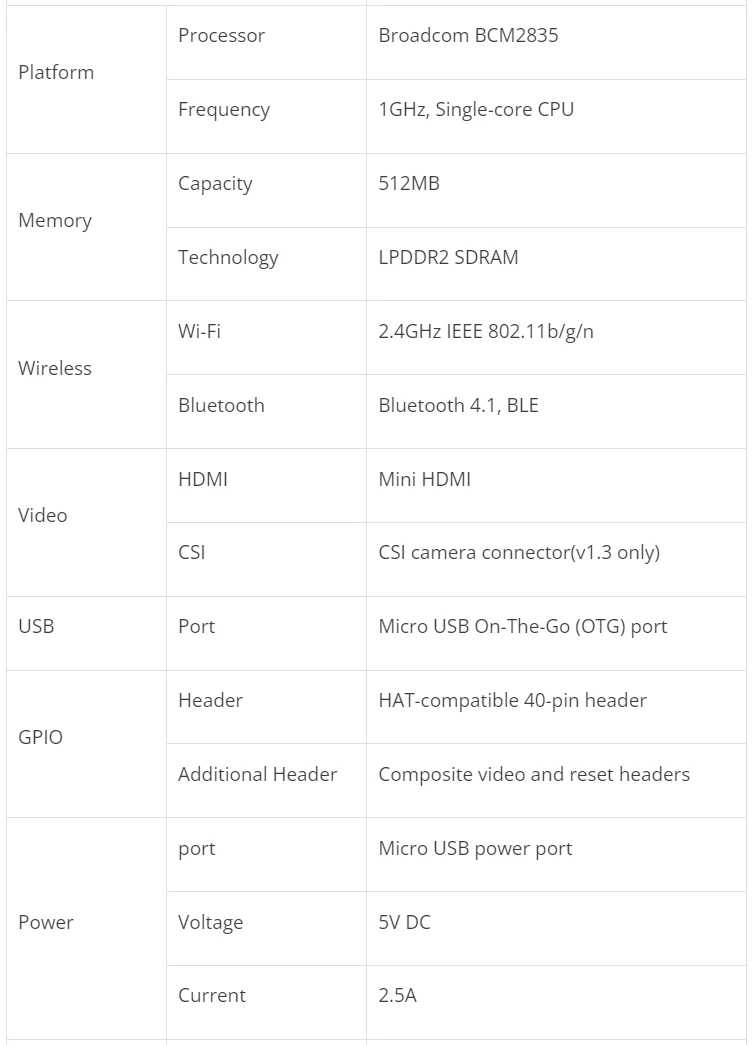 It is equipped with a 1GHz single-core ARM Cortex-A7 processor and 512MB of LPDDR2 SDRAM, providing sufficient computing power and running space. It utilizes a microSD card as the primary storage medium, allowing for the installation of the operating system and storage of data.