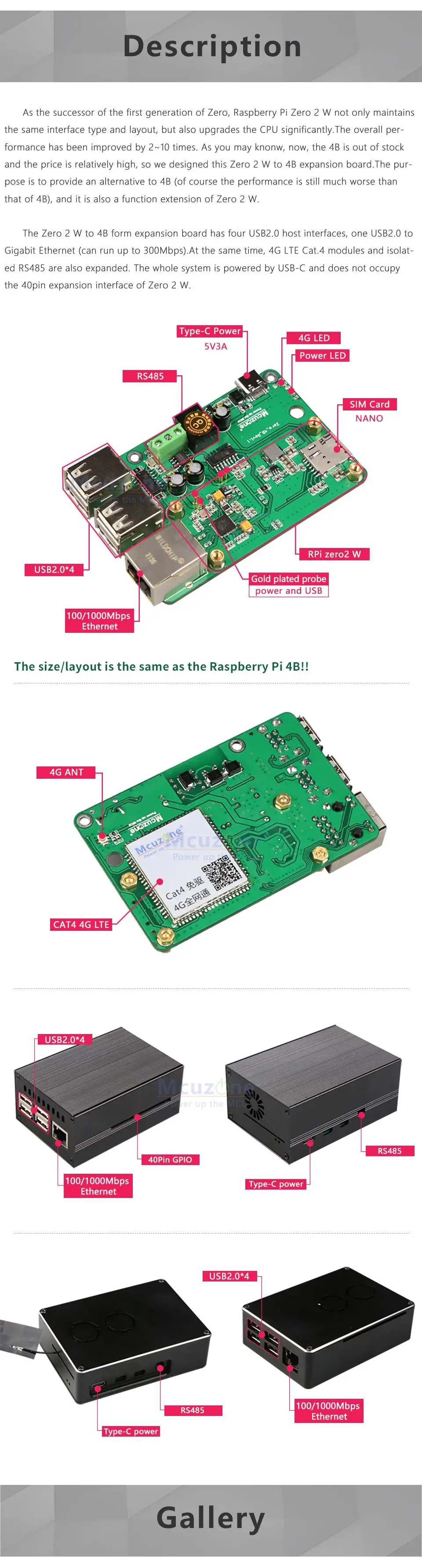 Comprar Raspberry Pi zero2 W-4G Placa de expansión RS485 USB zero2 W a RPI 4B 4G LTE CAT4