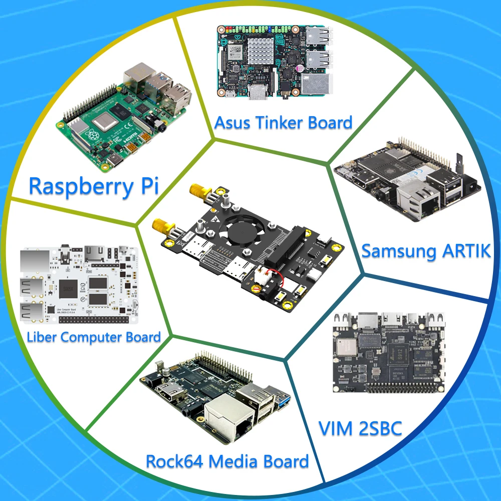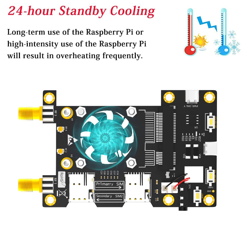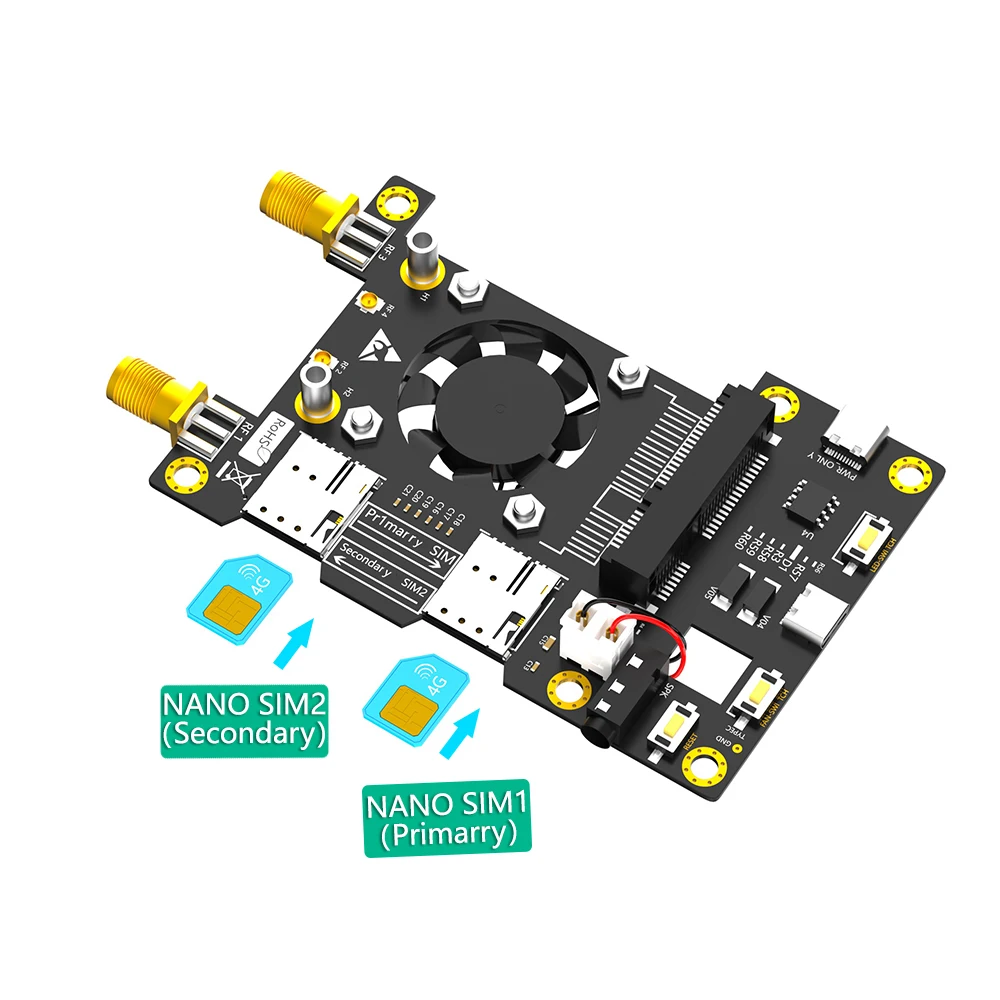 3G/4G & LTE Base HAT para Raspbe rry/ As US Tinker Board/ Sam Sung ARTIK /Rock64 Media/Liber Placa de computadora con ventilador enfriador y LED de decoloración automática