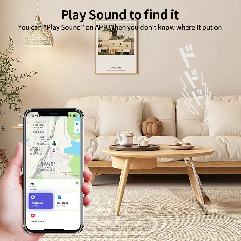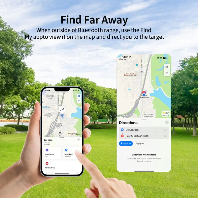 【Encuentre cerca con altavoz incorporado】El rastreador incluye un altavoz incorporado que le permite localizar fácilmente sus pertenencias dentro de un rango de Bluetooth de hasta 164 pies.Simplemente use la aplicación Find My en su dispositivo Apple para activar una alerta sonora desde la etiqueta, guiándole directamente a la ubicación de su artículo.