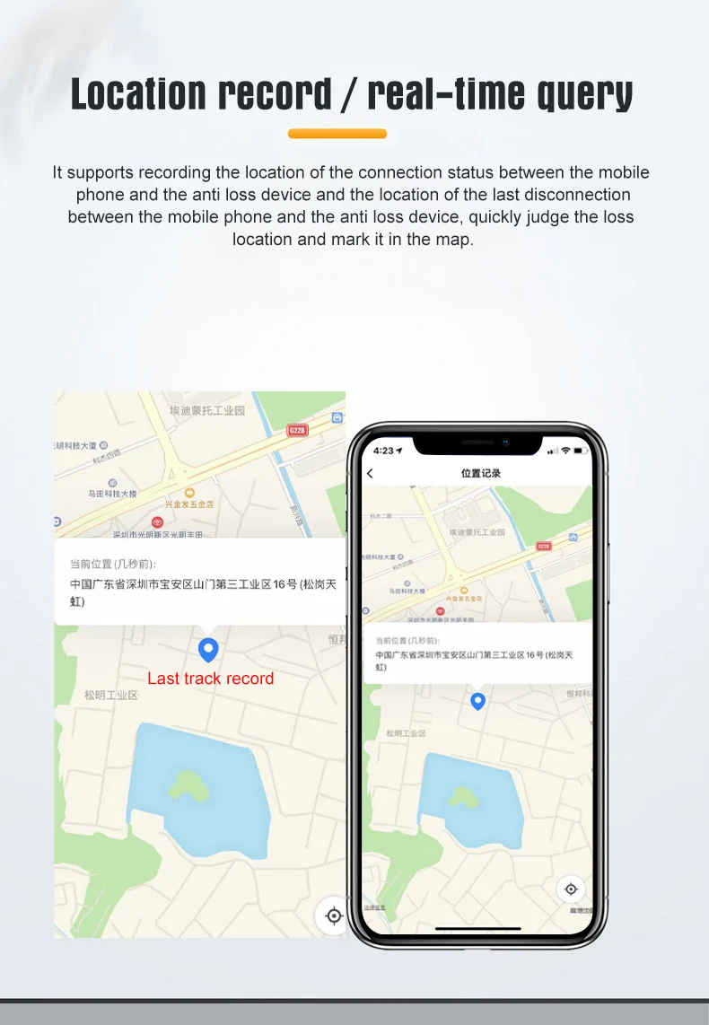 Búsqueda de posicionamiento: si no presta atención al artículo perdido después del recordatorio, puede verificar la posición perdida a través de la función de posicionamiento en la aplicación, es decir, la posición se desconectó del teléfono.