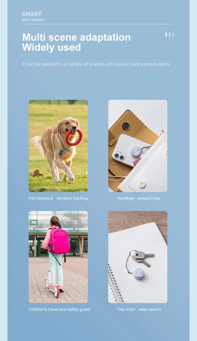 Adecuado para billetera, coche, niños, mascotas, bolsas, Maleta u otras pertenencias.