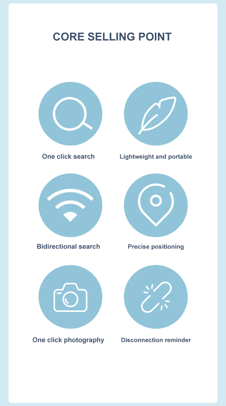 Al usar el software de la aplicación y la conexión con dispositivos móviles como teléfonos móviles, es fácil perder artículos y objetos de valor (como llaves, bolsos, etc.) agrupados, para lograr el recordatorio antipérdida del artículo, para encontrar la función del teléfono móvil