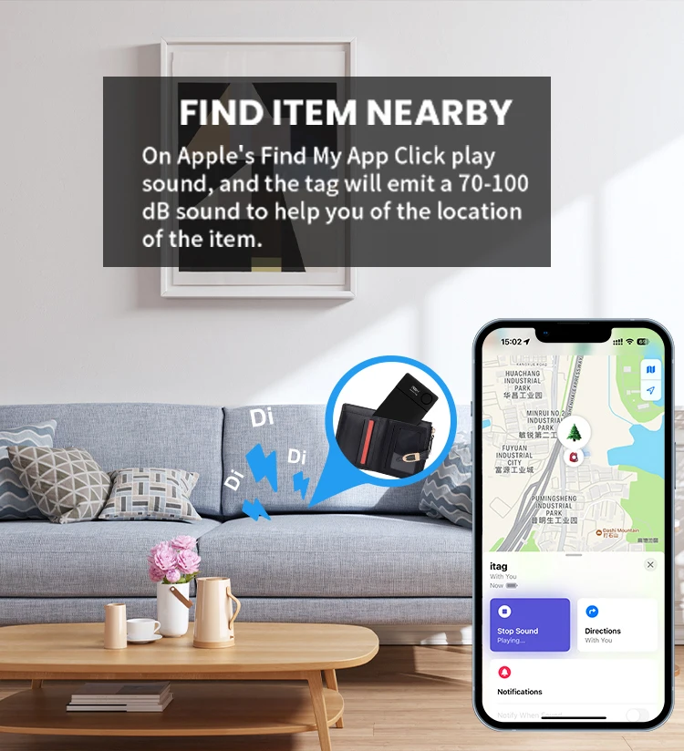 Teléfono móvil y dispositivo en el modelo BLE nacional (generalmente unos 20 metros), en la aplicación "Buscar mi", haga clic, reproduzca el sonido, el dispositivo emitirá un sonido rápido y lo ayudará a encontrar rápidamente el cercano mediante una tarjeta inteligente.