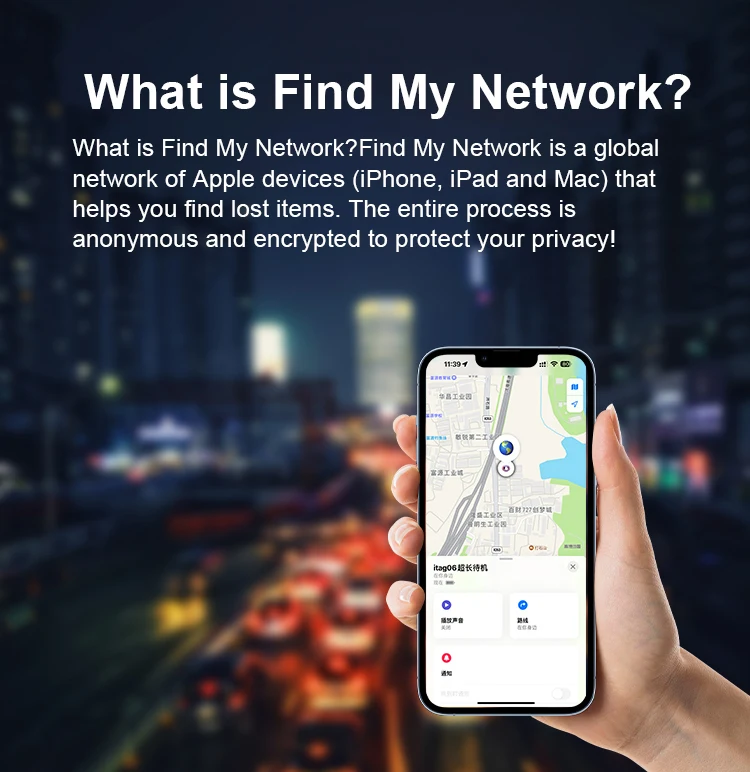 Trabaje con Apple Find My APP, cuando la tarjeta inteligente esté fuera del alcance de Bluetooth con su iPhone, recibirá una notificación en el iPhone. es más,Se puede rastrear sin límite de distancia para evitar pérdidas, siempre y cuando haya otros dispositivos iOS cerca de