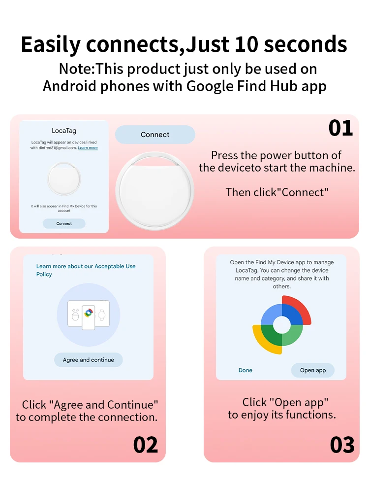 Este es un dispositivo antipérdida Bluetooth inteligente impulsado por la aplicación "Encuentra Hub" oficial de Google.Se vincula con una amplia red de dispositivos Android para ayudar a los usuarios a localizar y encontrar rápidamente sus pertenencias, y está equipado con múltiples medidas de protección de la privacidad, lo que la convierte en una solución inteligente, segura y eficiente para la búsqueda de artículos.