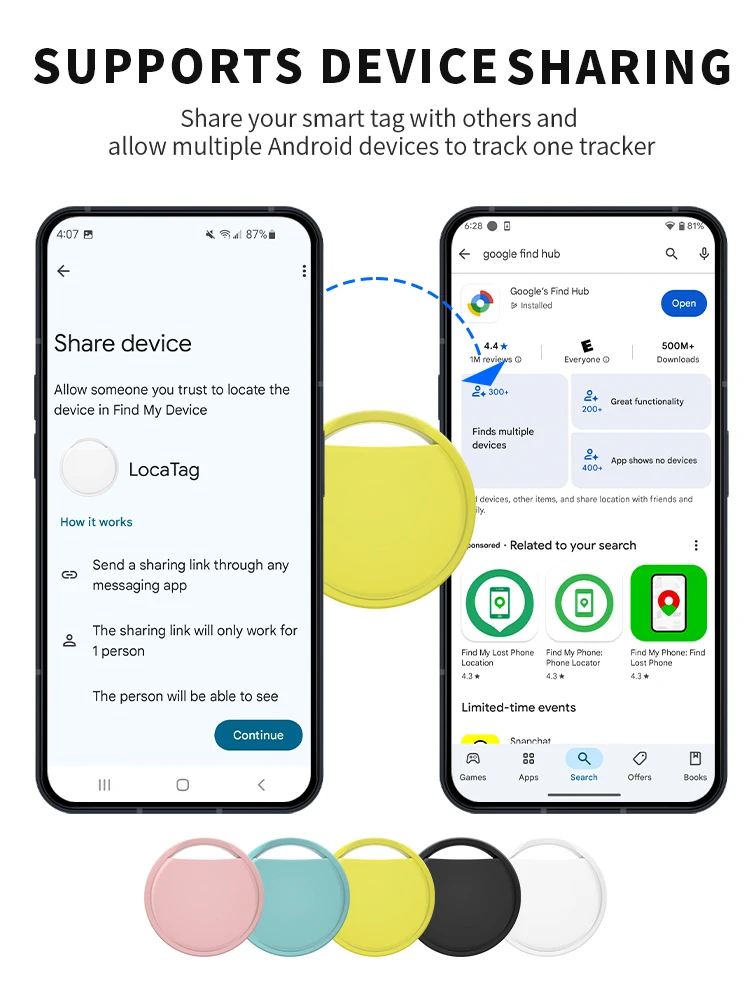 Vea la ubicación precisa de los elementos directamente en el mapa de la aplicación "Encuentra Hub".Cuando un elemento está cerca, la aplicación lo guiará para reducir el rango a través de indicadores de intensidad de la señal hasta que lo encuentre.El dispositivo antipérdida puede emitir un zumbido fuerte (≥ 75 decibeles) de forma remota, lo que facilita su búsqueda en puntos ciegos.Cuando los artículos están lejos de usted, miles de millones de dispositivos Android en todo el mundo (teléfonos, tabletas, computadoras) forman una red de búsqueda segura.