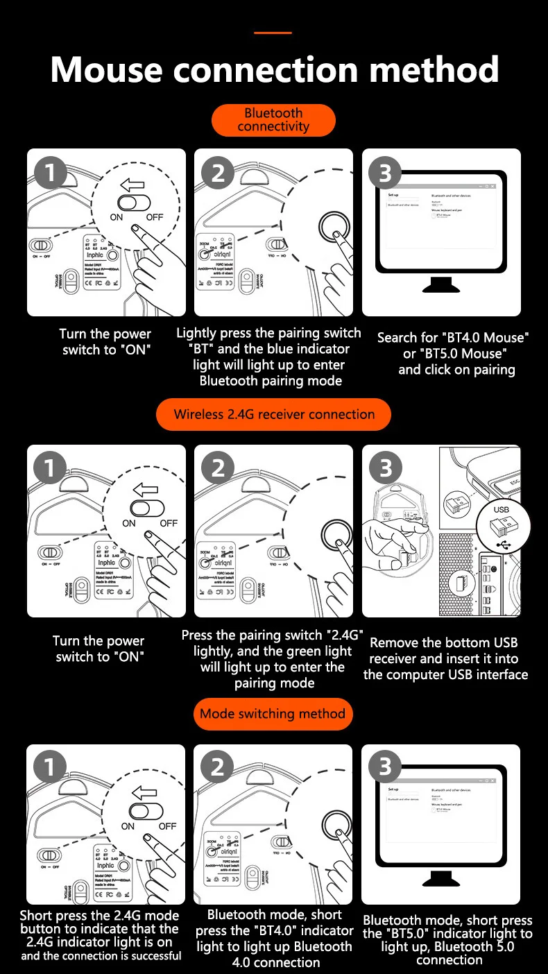Comprar Ratón Bluetooth Inphic DR01, ratón inalámbrico recargable, ergonómico, silencioso, para oficina, adecuado para ordenadores, portátiles, IPad y tabletas