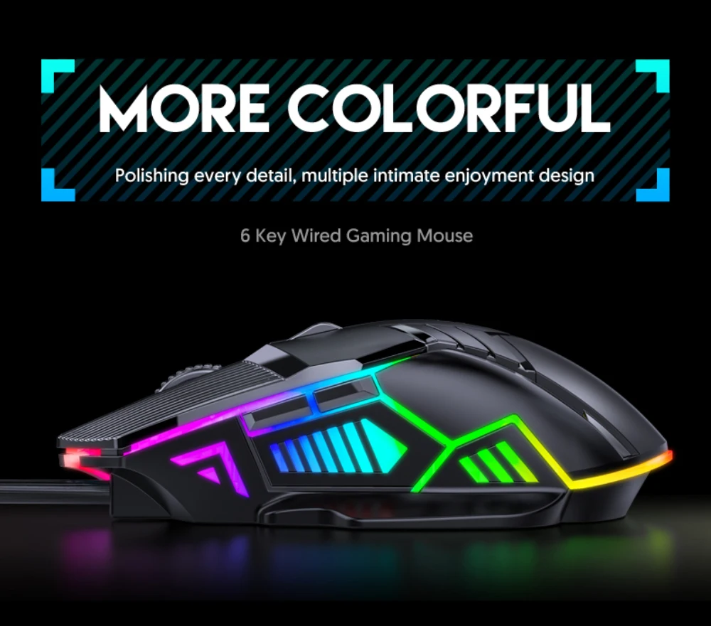 Ratón con cable RGB, ratón para ordenador con cable, ratón ergonómico retroiluminado por LED para juegos, ordenador portátil y PC