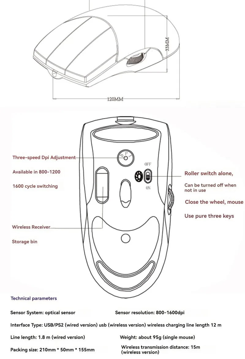 Nota: Cargue el mouse primero después de recibir los productos, este modelo de carga del mouse debe girarse a la posición ON para una carga normal.