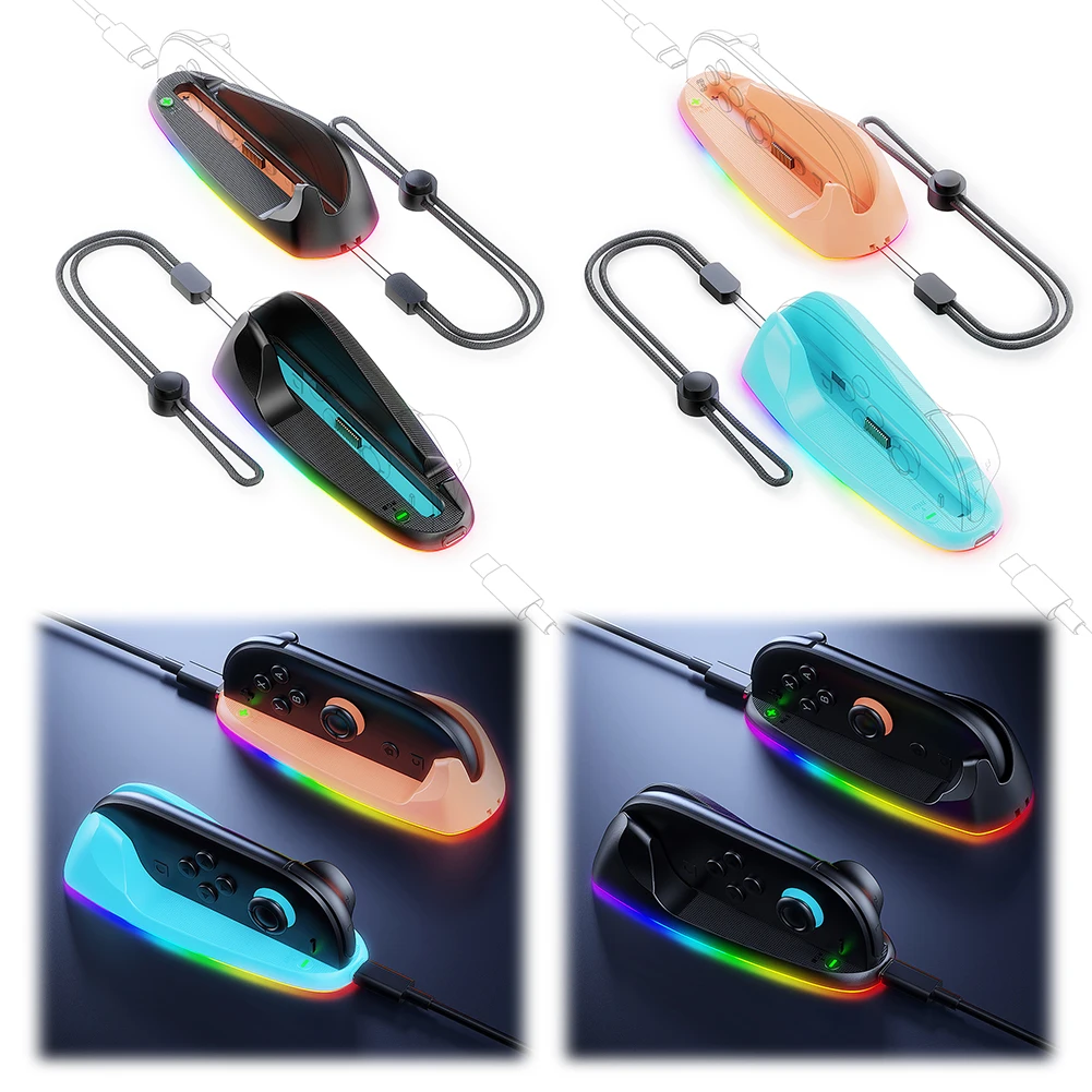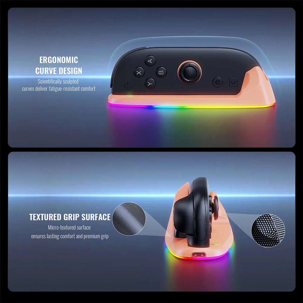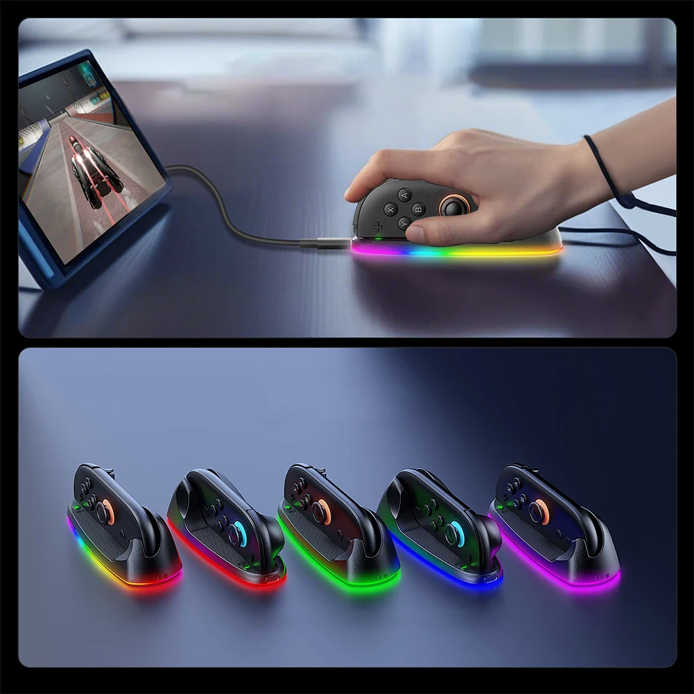 Controlador de juego, ratón con luces RGB, empuñaduras de ratón, controlador de juego, base de carga para Joy-Con 2Nota: