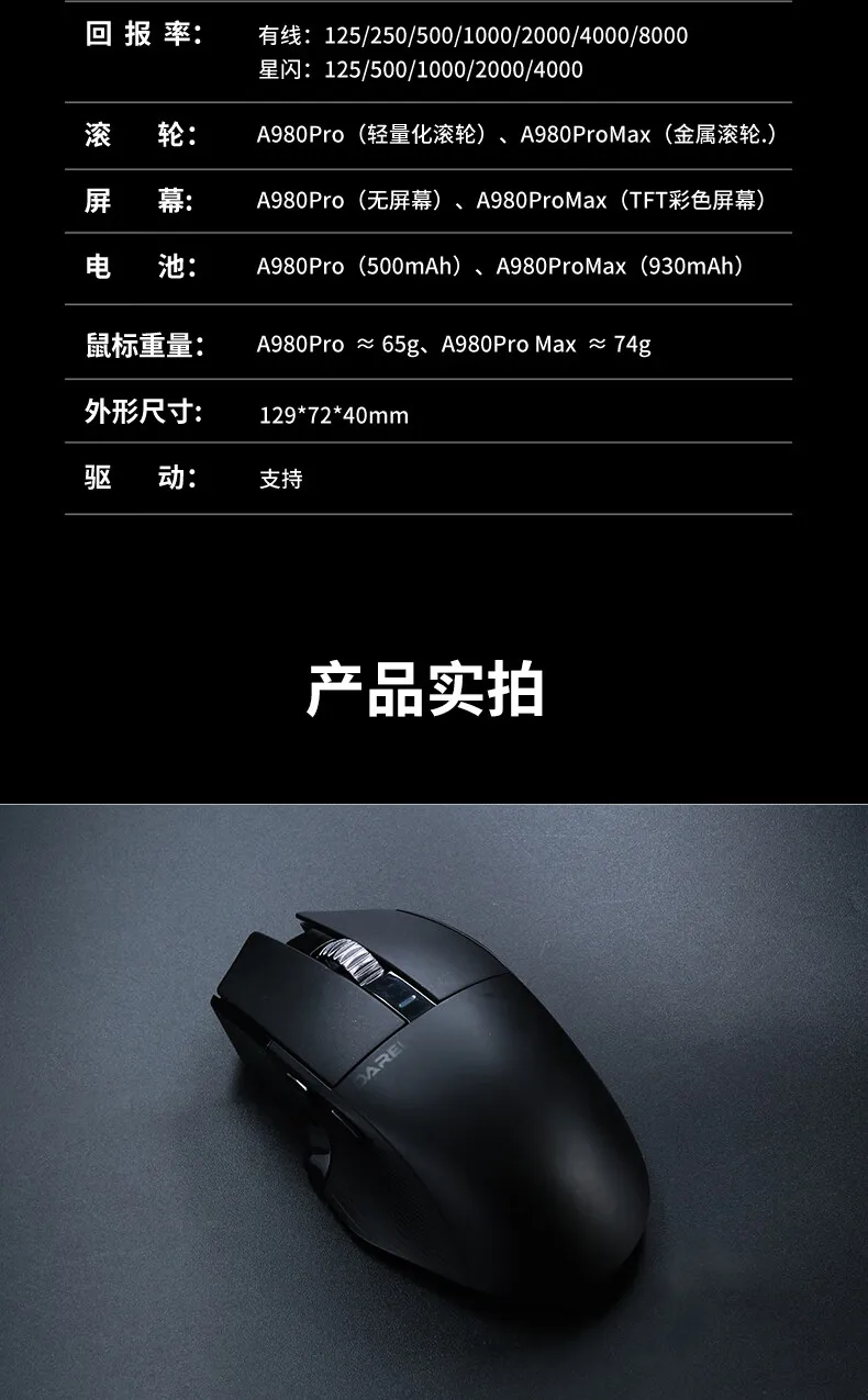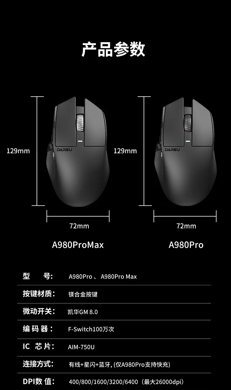 Ratón Dareu A980 Pro/Pro Max, tres modos, aleación de magnesio personalizada, Paw3395, inalámbrico, 4K, ligero, para juegos Esports