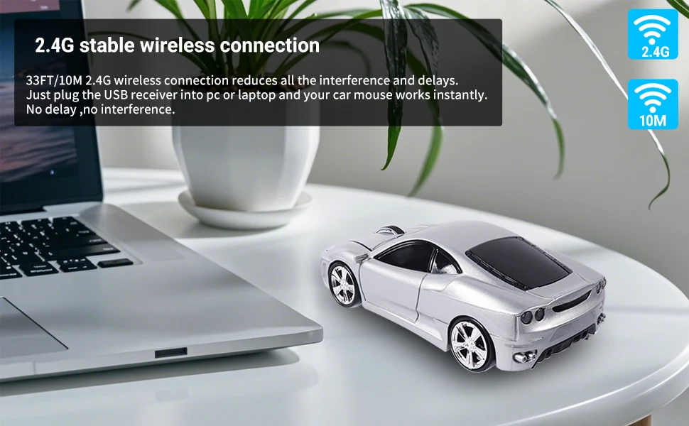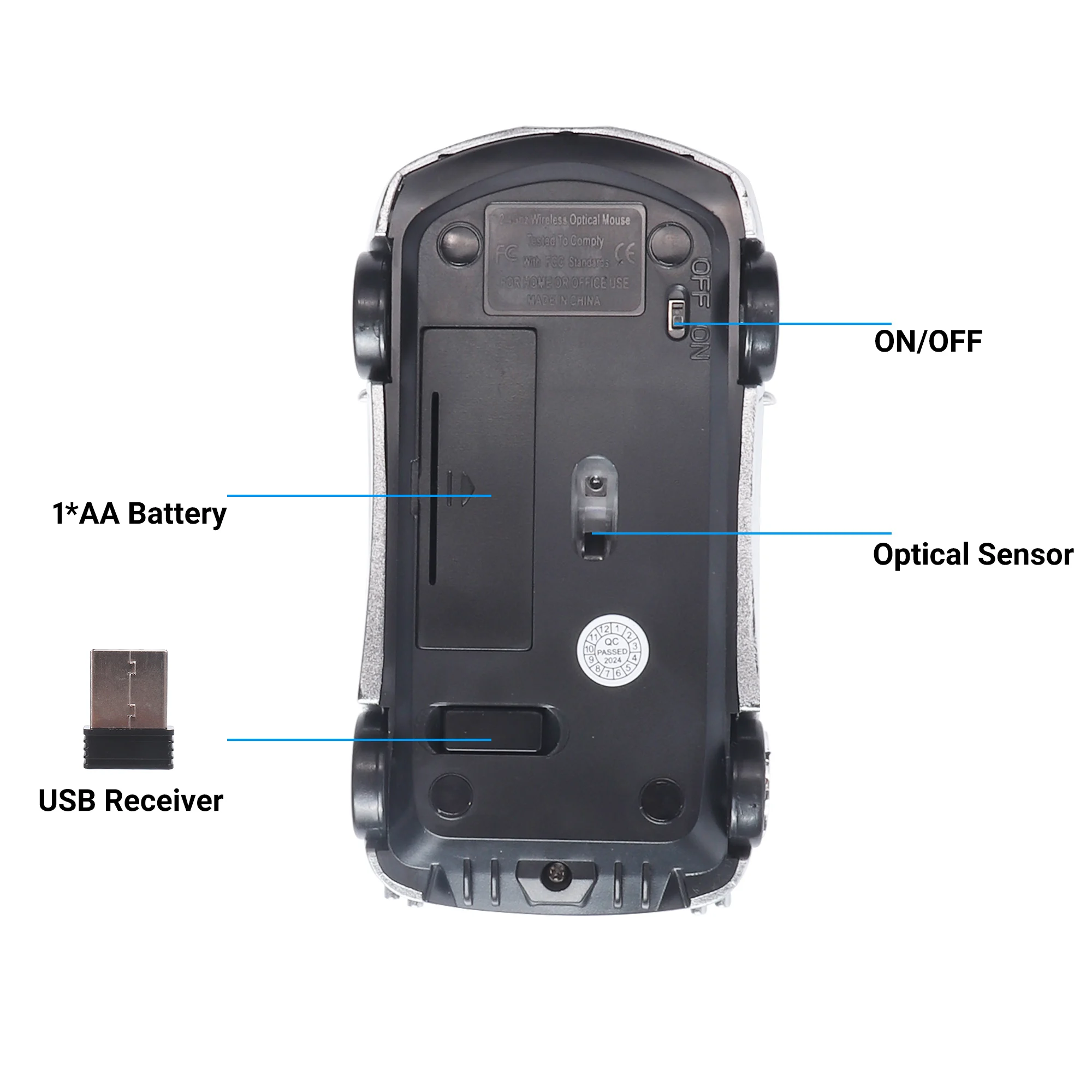 Ratón inalámbrico deportivo para coche USB de 2,4 GHz, tacto cómodo.