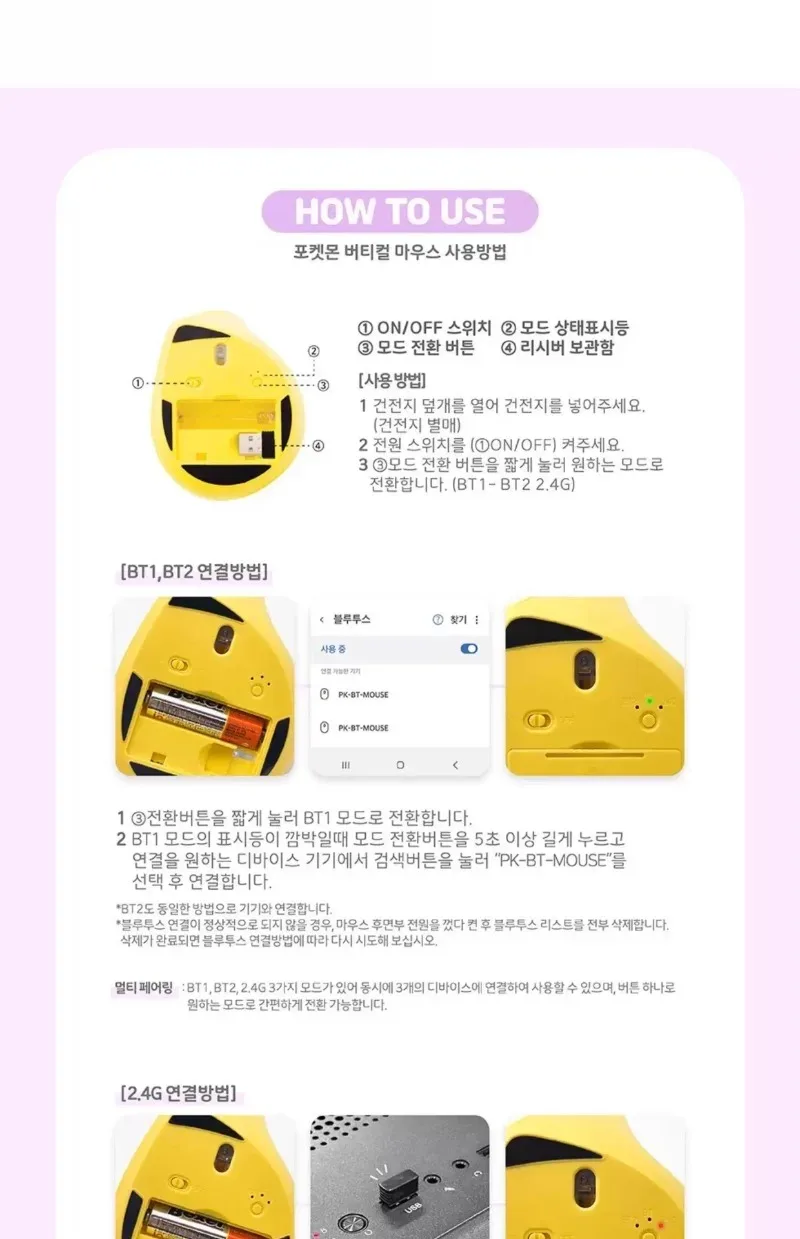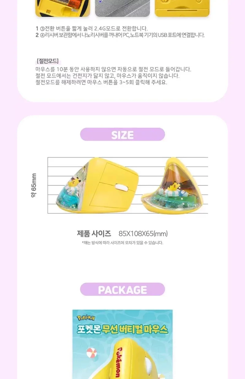 Ratón de modo dual USB Bluetooth con agarre vertical Pikachu