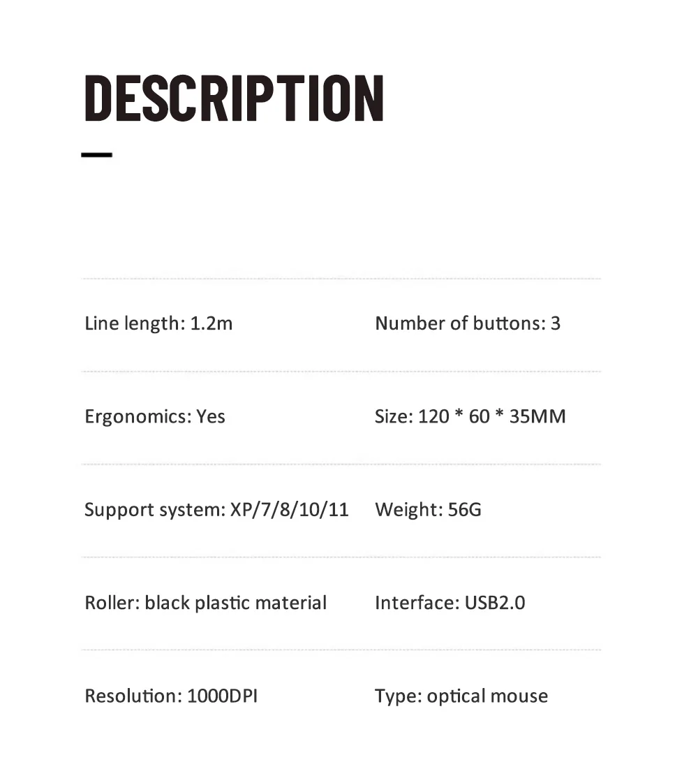 1. Ratón de ordenador simple, ratón ergonómico con interfaz USB fotoeléctrica con cable, oficina en casa, se puede aplicar.