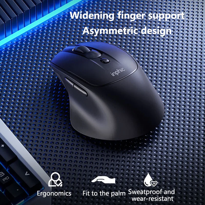 Basado en la ergonomía de la mano derecha y combinado con las características de la forma de la mano humana, el reposapiés se ensancha y diseña asimétricamente para lograr un buen ajuste entre la muñeca, las puntas de los dedos, y palma.