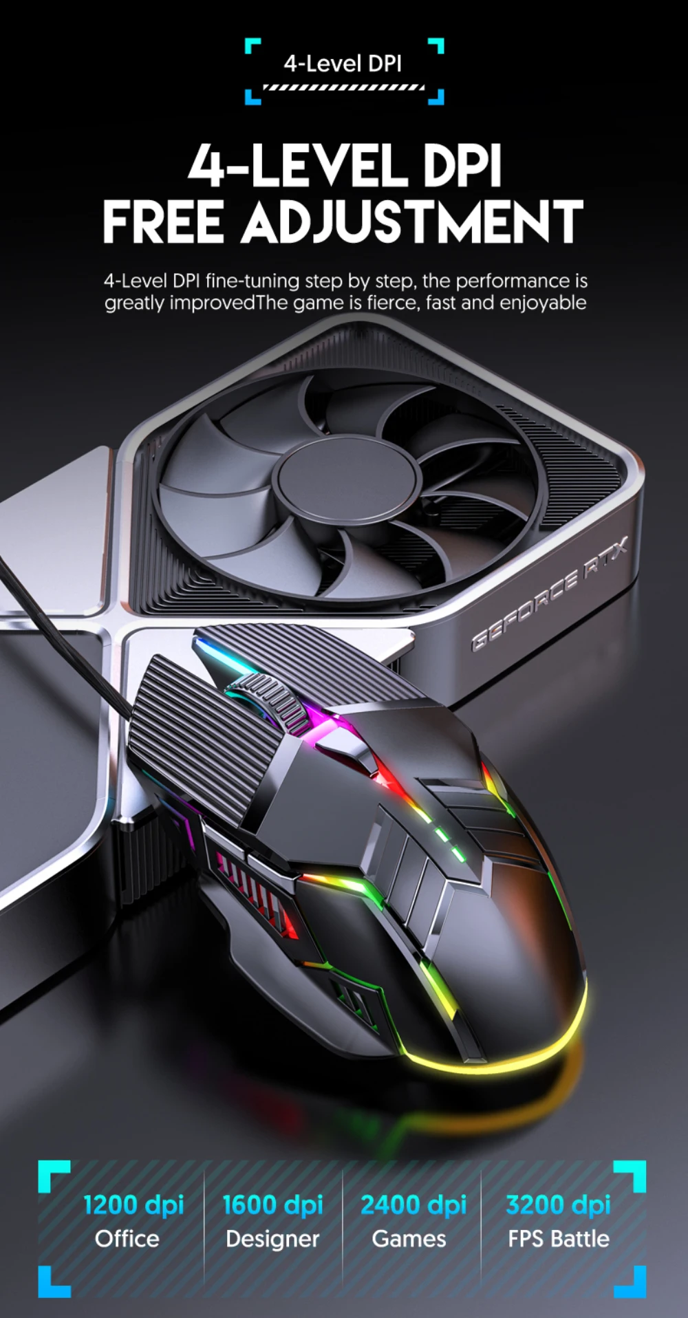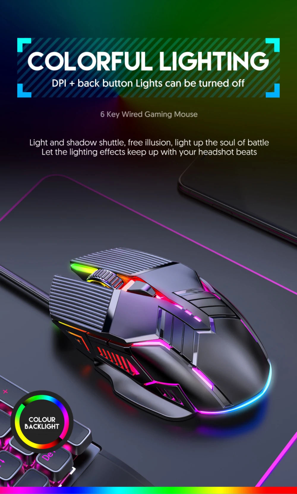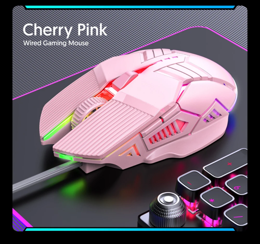 Ratón ergonómico para juegos con cable, ratón USB para ordenador, ratón retroiluminado RGB para juegos, ratón silencioso LED de 6 botones para PC y portátil