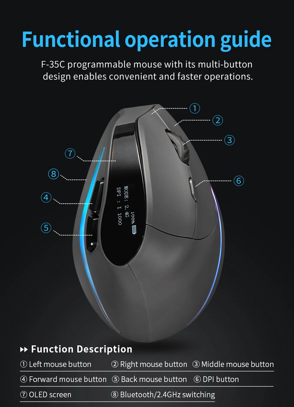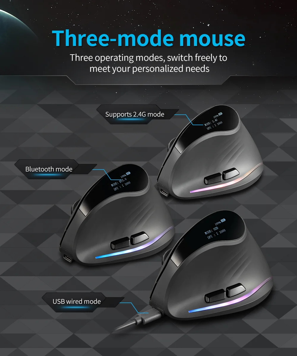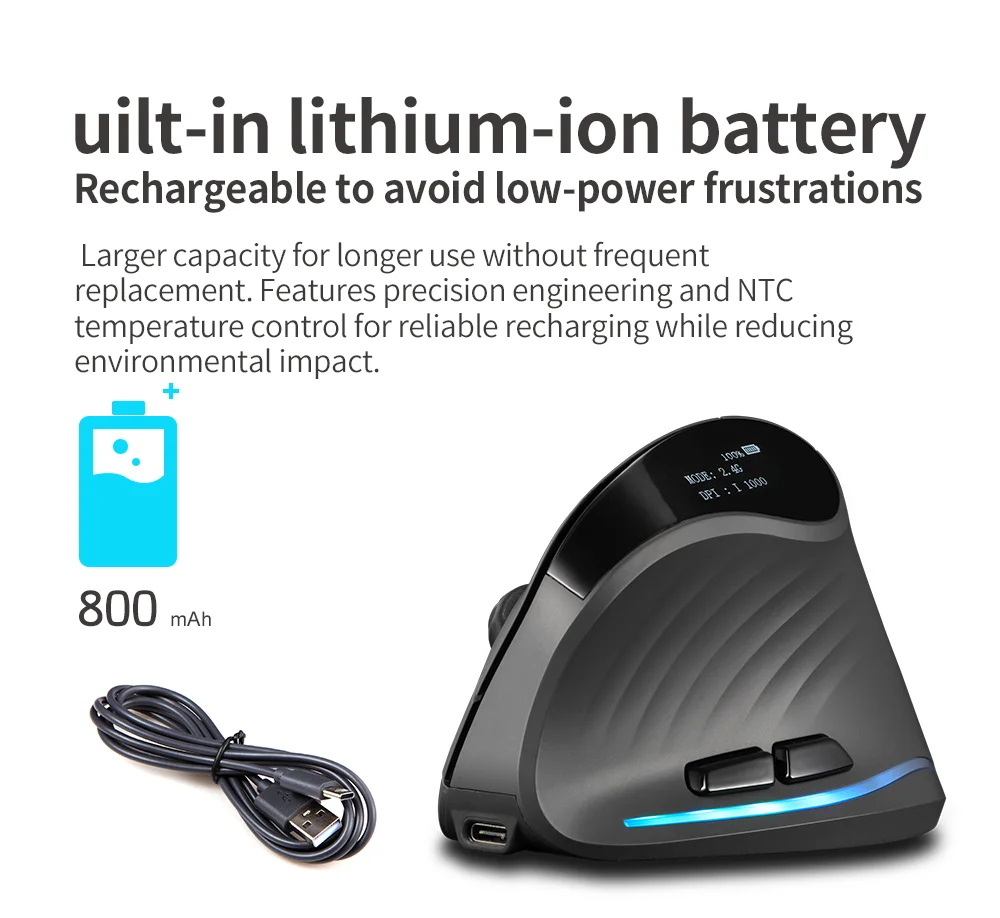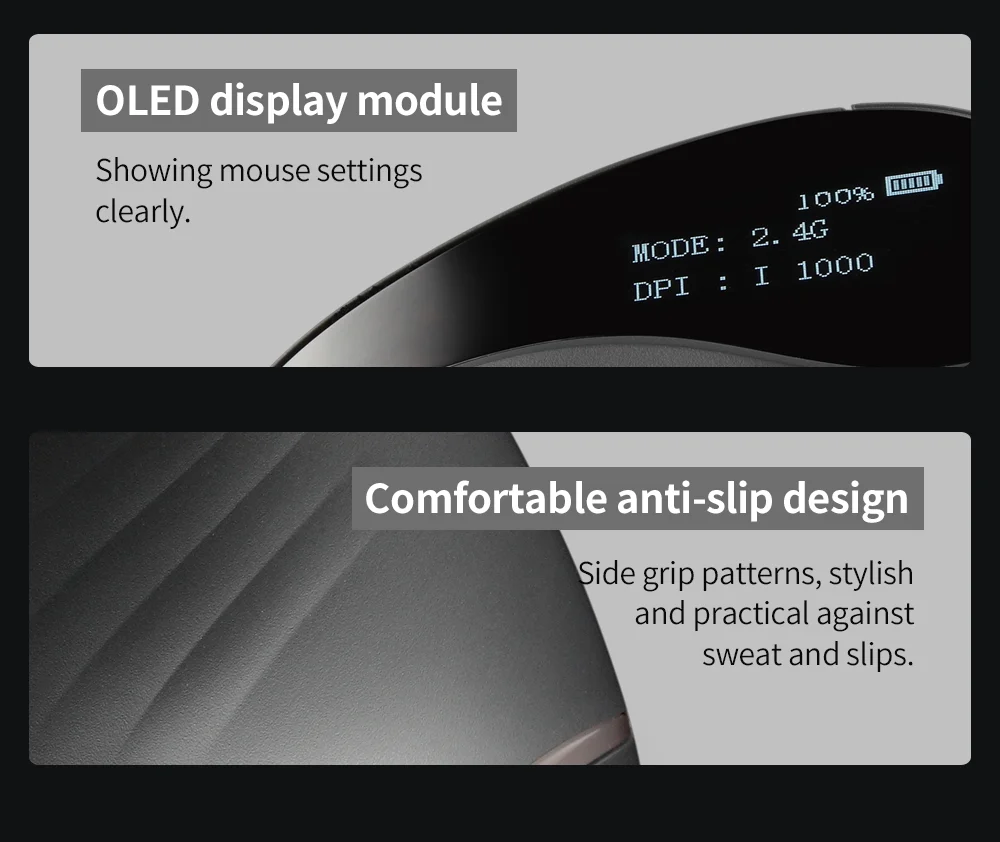 【Pantalla OLED】 Puede mostrar porcentaje de batería, DPI y modo de uso.