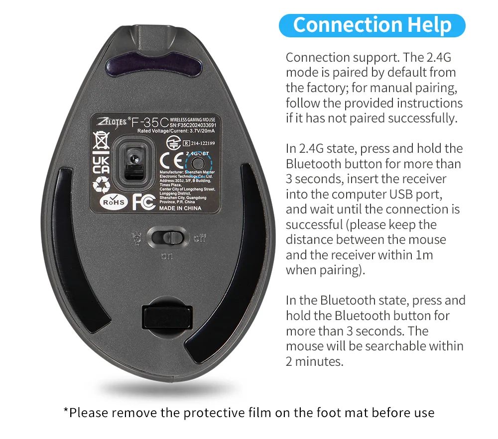 【1 ratón para 4 dispositivos】El F35C admite 2,4G y 3 Bluetooth 5.0, por lo que se pueden conectar 4 dispositivos.