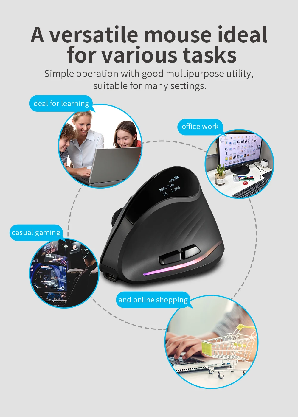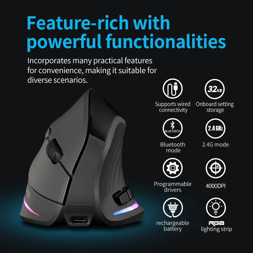 Comprar Ratón ergonómico Lefon 2,4G, ratón Vertical inalámbrico USB, ratón recargable para juegos para PC, portátil, MacOS, oficina, modelo F35C/F35B/F35