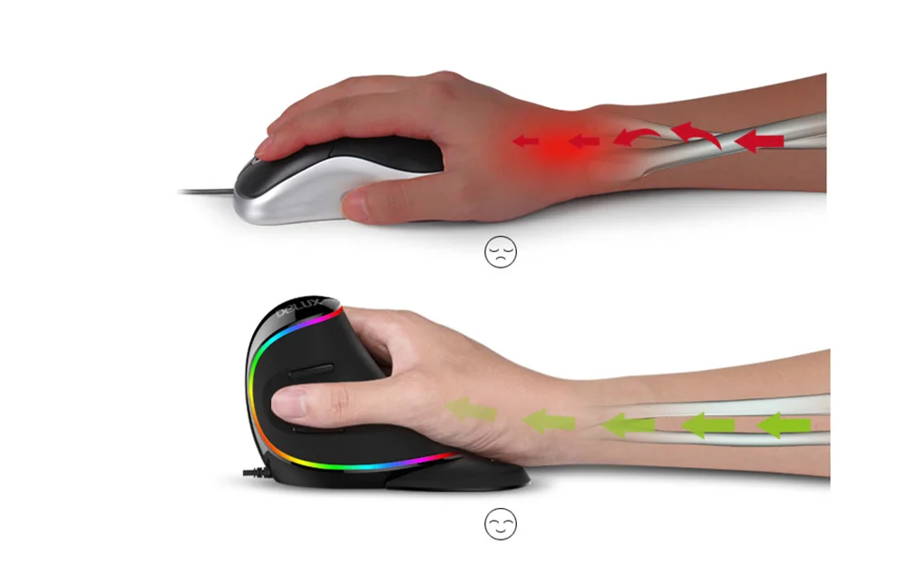 Comprar Ratón ergonómico Vertical para juegos Delux M618 PLUS, 6 botones, 4000 DPI RGB, con cable/ratón derecho inalámbrico para ordenador portátil PC