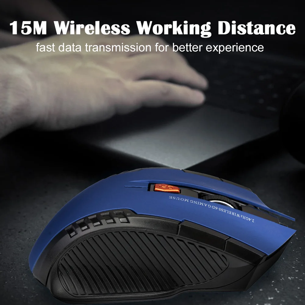 Ratón óptico inalámbrico de 2,4 GHz con receptor USB Gamer 1600DPI Mouse de 6 botones para ordenador portátil Accesorios Mouse Gamer