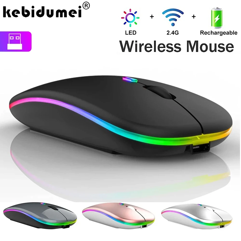 Comprar Ratón inalámbrico de 2,4 Ghz, ratón silencioso ergonómico, ratón recargable de 1600DPI con retroiluminación RGB, ratón USB para juegos para ordenador portátil, PC y tableta