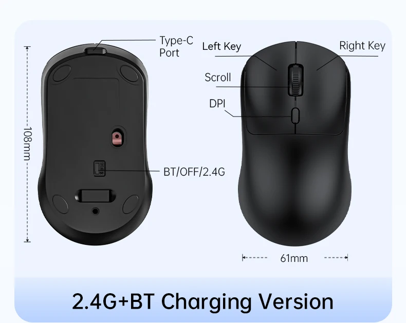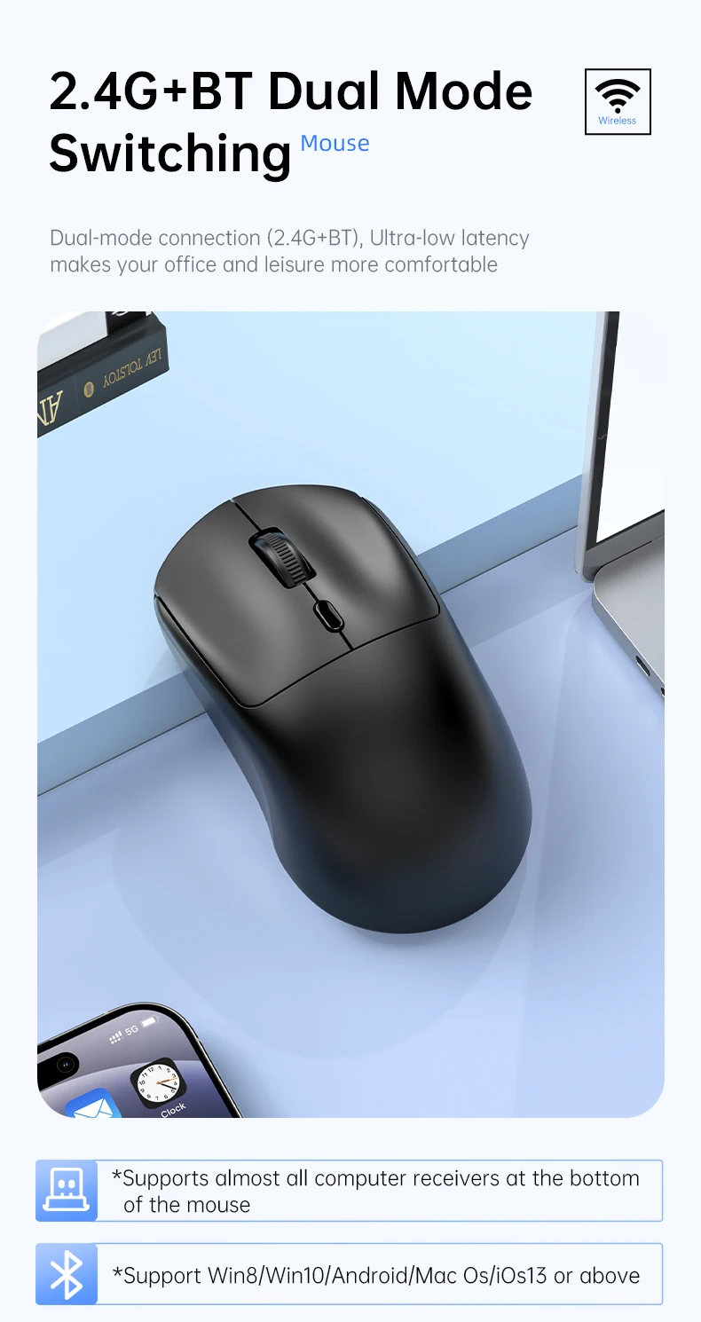 Ratón inalámbrico de 2,4G, USB, Bluetooth, ligero, 1600 DPI, ergonómico, silencioso, para juegos, Macbook, escritorio, portátil, iPad