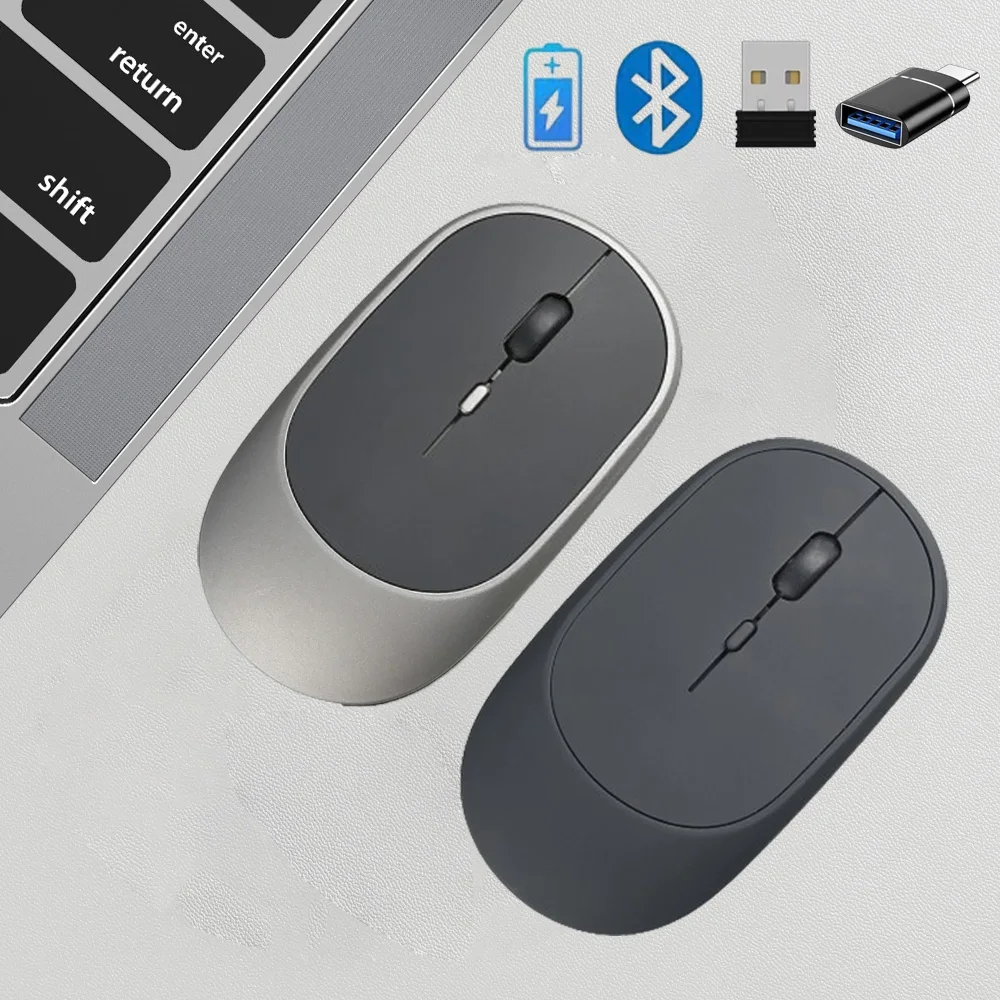 Comprar Ratón inalámbrico 2,4G USB para juegos, Mouse silencioso ergonómico, recargable, Compatible con Bluetooth, para PC, ordenador portátil, Macbook y tableta