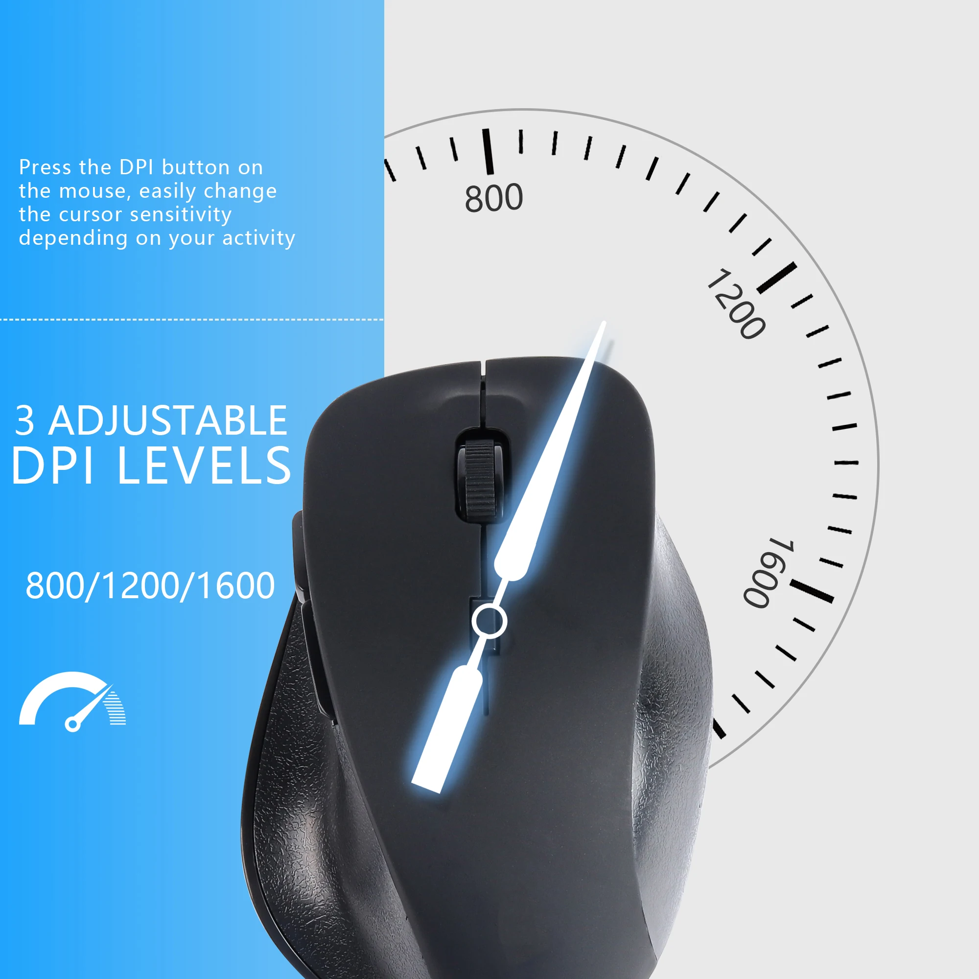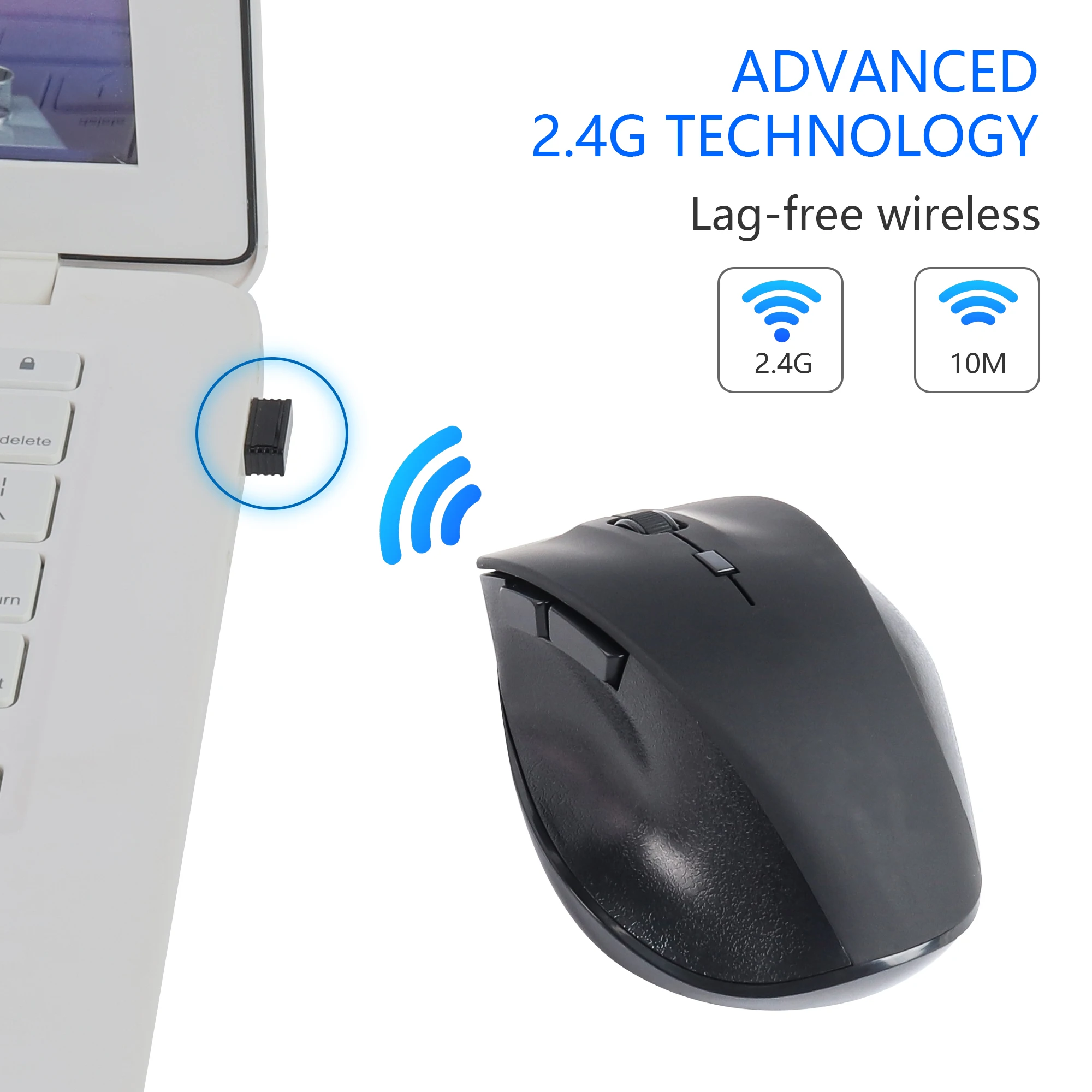 Ratón inalámbrico de 2,4G, dispositivo con diseño ergonómico, ligero, ahorro de energía, 1600DPI, ajustable, Plug And Play, botón silencioso, uso en oficina y negocios